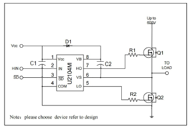 •主要特點(diǎn):浮動(dòng)通道設(shè)計(jì)用于自啟動(dòng)操作;完全工作到+600V;容忍負(fù)瞬態(tài)電壓;v /dt免疫;柵極驅(qū)動(dòng)供電范圍從8到20V;欠壓鎖定;3.3V, 5V和15V輸入邏輯兼容;交叉?zhèn)鲗?dǎo)防止邏輯;內(nèi)部設(shè)置死區(qū)時(shí)間;與輸入相一致的高側(cè)輸出;關(guān)斷輸入關(guān)閉兩個(gè)通道;兩個(gè)通道的傳播延遲匹配