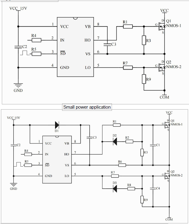 •主要特點:集成自舉二極管;為自舉操作而設計的浮動通道;完全工作到+600V;容忍負瞬態(tài)電壓v /dt免疫;柵極驅動供電范圍從4.8到20v;欠壓鎖定;3.3V, 5V和15V輸入邏輯兼容;交叉?zhèn)鲗Х乐惯壿?內部設置死區(qū)時間;高側輸出與輸入相一致