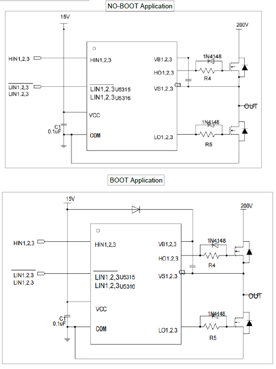 •主要特點:集成DBOOT;浮動通道設計用于bootstrapOperation;完全工作到+280 V;容忍負瞬態電壓;柵極驅動供電范圍從4.5V到20V;獨立的3個半橋驅動器;高側輸出反相;3.3V邏輯兼容;低di/dt柵極驅動,更好的抗噪性