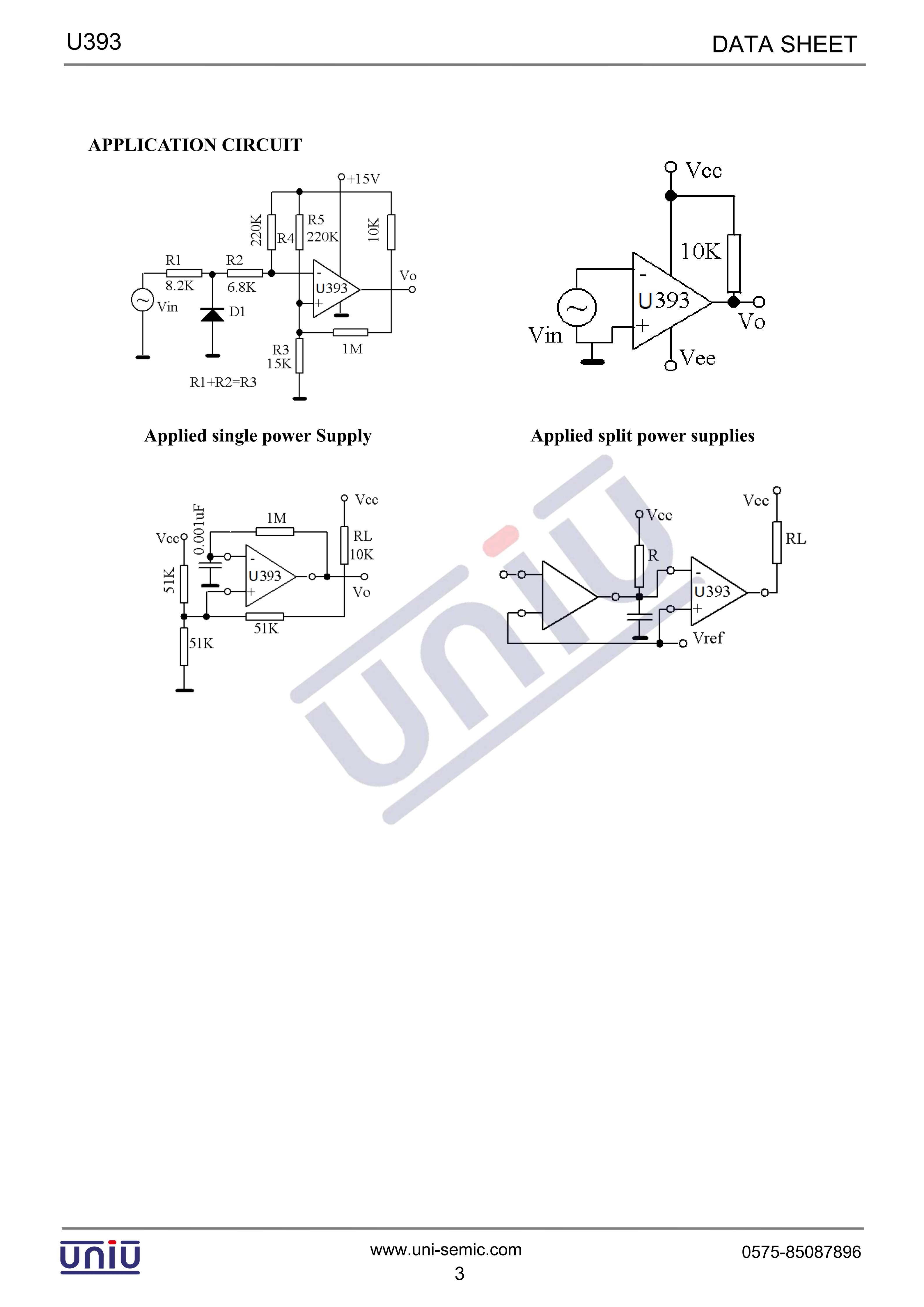 U393由兩個(gè)獨(dú)立的電壓比較器組成,其失調(diào)電壓規(guī)格低至最大2.0mV。用于兩個(gè)專(zhuān)門(mén)設(shè)計(jì)用于在寬電壓范圍內(nèi)從單個(gè)電源運(yùn)行的比較器。從分離電源操作也是可能的,并且低電源電流損耗與電源電壓的大小無(wú)關(guān)。這些比較器還具有一個(gè)獨(dú)特的特性,即輸入共模電壓范圍包括接地,即使從單個(gè)電源電壓操作。