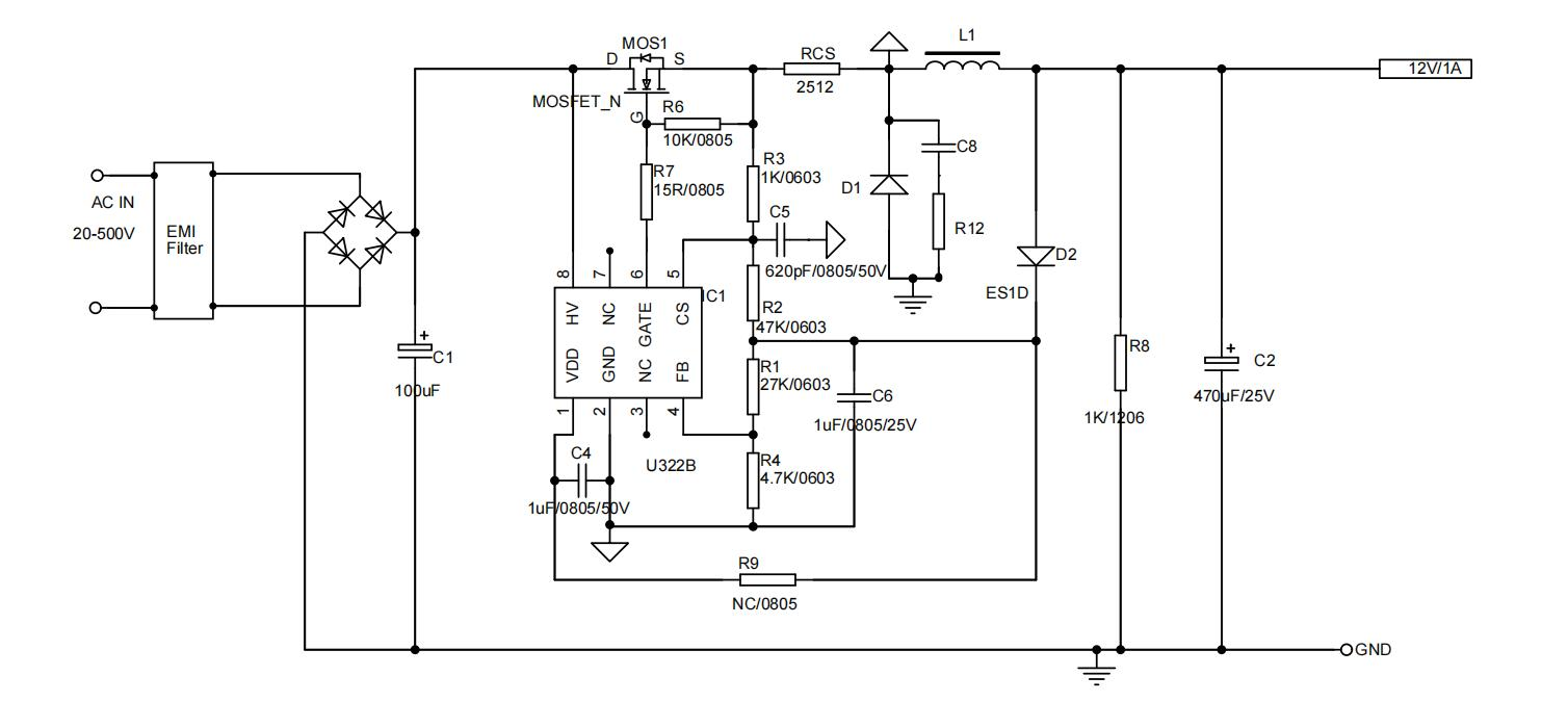 U322B是一款高性能低成本PWM控制功率器,適用于離線式小功率降壓型應(yīng)用場(chǎng)合,外圍電路簡(jiǎn)單、器件個(gè)數(shù)少。同時(shí)產(chǎn)品內(nèi)置高耐壓MOSFET可提高系統(tǒng)浪涌耐受能力。與傳統(tǒng)的PWM控制器不同,U322B內(nèi)部無(wú)固定時(shí)鐘驅(qū)動(dòng)MOSFET,系統(tǒng)開(kāi)關(guān)頻率隨負(fù)載變化可實(shí)現(xiàn)自動(dòng)調(diào)節(jié)。同時(shí)芯片采用了多模式PWM控制技術(shù),有效簡(jiǎn)化了外圍電路設(shè)計(jì),提升線性調(diào)整率和負(fù)載調(diào)整率并消除系統(tǒng)工作中的可聞噪音。此外,芯片內(nèi)部峰值電流檢測(cè)閾值可跟隨實(shí)際負(fù)載情況自動(dòng)調(diào)節(jié),可以有效降低空載情況下的待機(jī)功耗。U322B集成有完備的帶自恢復(fù)功能的保護(hù)功能:VDD欠壓保護(hù)、逐周期電流限制、輸出過(guò)壓保護(hù)、過(guò)熱保護(hù)、過(guò)載保護(hù)和VDD過(guò)壓保護(hù)等。