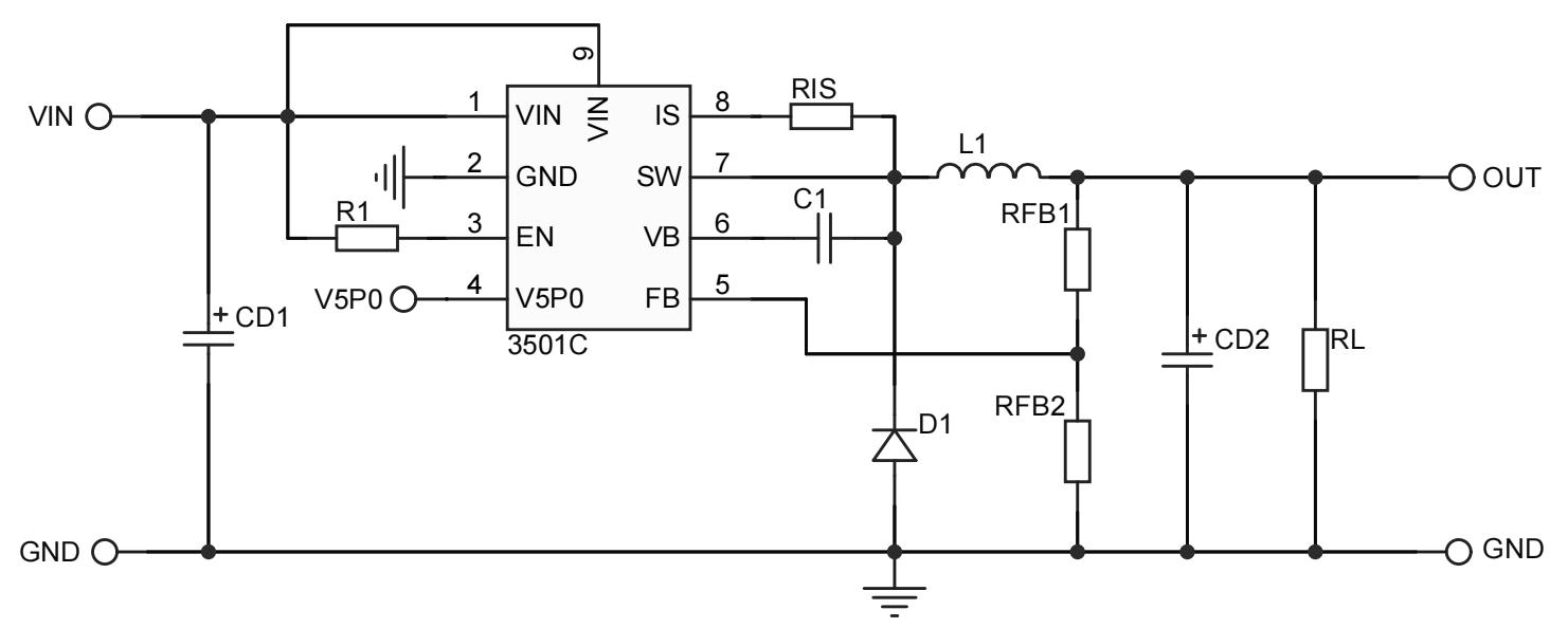 ●集成高壓啟動電路●集成5.3V基準電路●內置60V/29 mΩ MOSFET●內置自引導二極管●滯后控制:無補償●130KHz開關頻率●PWM調光控制輸入降壓應用●集成高側MOSFET的短路保護(SCP)●低靜態電流●熱關閉●可在帶有暴露焊盤的ESOP-8封裝中使用